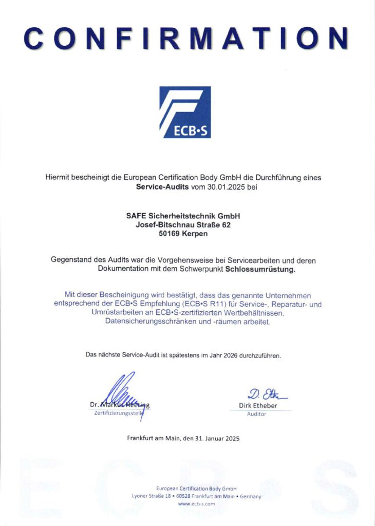 Tresor Vertrieb Service Wartung